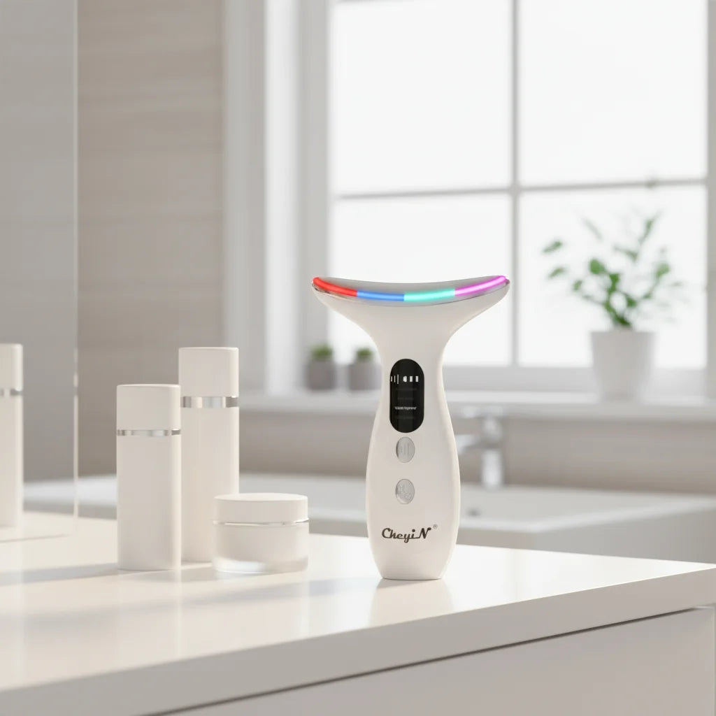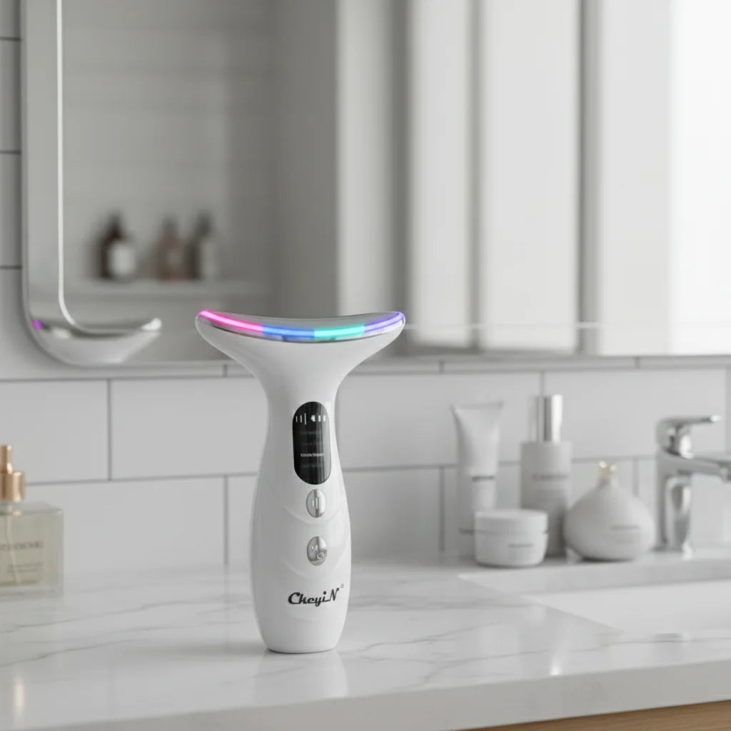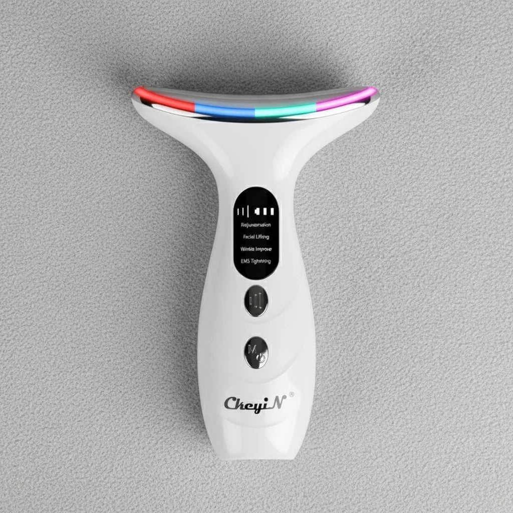 Discover the secret to a sculpted neck and radiant face. This device targets wrinkles, tightens skin, and reduces double chin for a visibly younger look. Easy to use, incredible results.